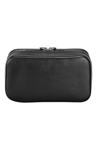 Несессер на молнии выполнили из искусственно состаренной мелкозернистой кожи. Аксессуар декорировали изготовленными вручную фирменными скобами из серебра 925-й пробы с патиной.