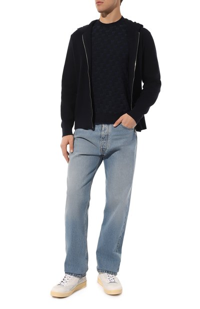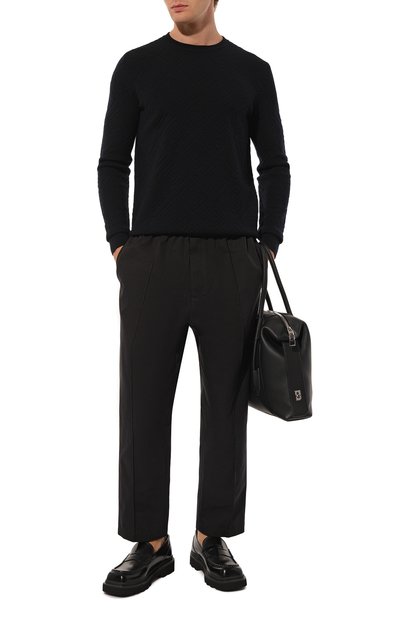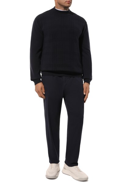 Свитер с шевронным жаккардовым узором связали из стрейчевой шерстяной пряжи с добавлением нейлона. Модель с рифлеными манжетами, низом и круглой горловиной органично впишется в базовый гардероб.
