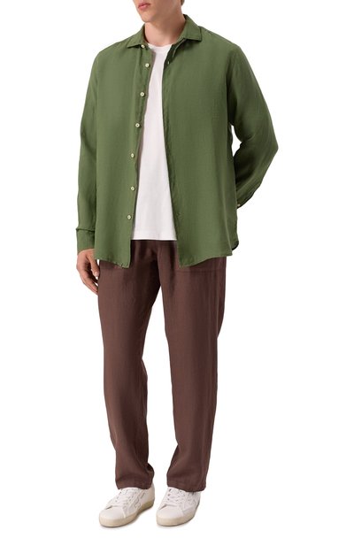 Брюки прямого кроя выполнили из хлопкового вельвета. Мо дель с эластичным поясом дополнили боковыми и прорезными задними карманами, один из которых украсили брендированной нашивкой.