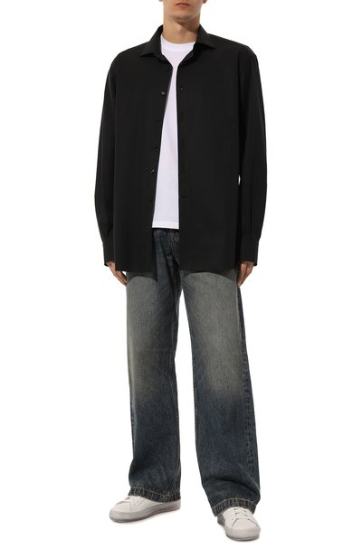 Футболку прямого кроя сшили из гладкого хлопкового джерси. Сбоку эластичную модель с круглым вырезом украсили брендированным ярлыком. В комплекте Luxe Performances – три идентичных изделия.