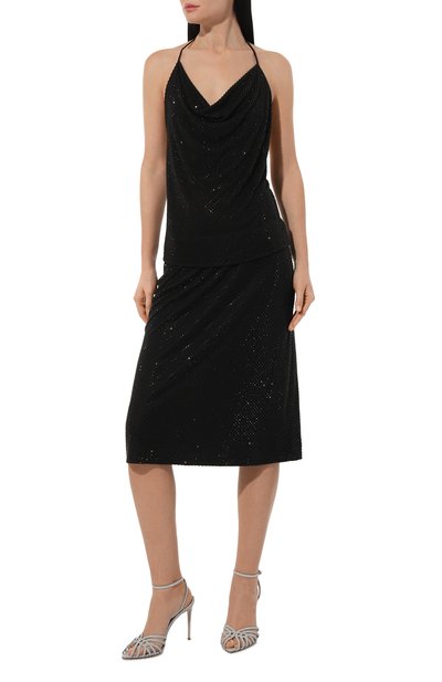 Босоножки Ally с ремешком на щиколотке выполнили из лакированной кожи. Кожаную подошву пары на шпильке украсили фирменным перламутровым кабошоном.