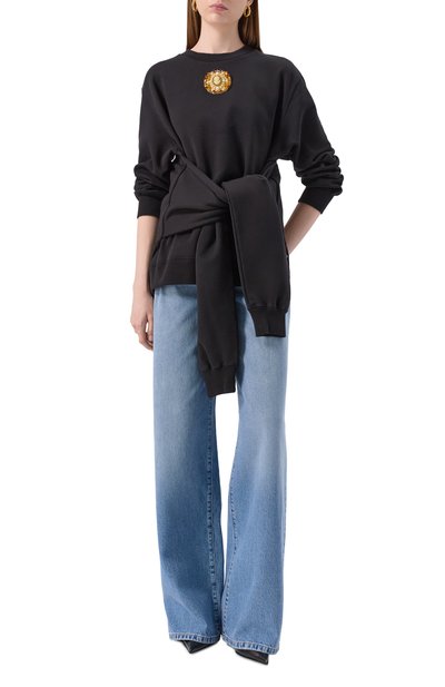 Свитшот-анорак с эластичными манжетами и кулисками на высокой горловине и поясе дополнили прорезным карманом спереди. Oversize-модель из хлопкового трикотажа украсили контрастным логотипом.