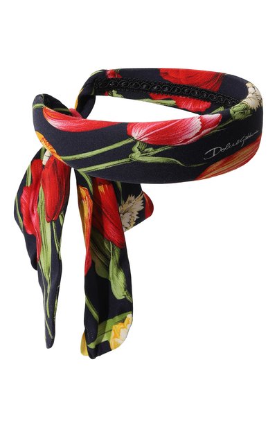 Гибкий пластмассовый каркас широкого ободка обтянули вискозой с брендированным мотивом Daisy. Модель с длинными лентами, которые можно завязать на бант, дополнили нашивкой из тесьмы с внутренней стороны.