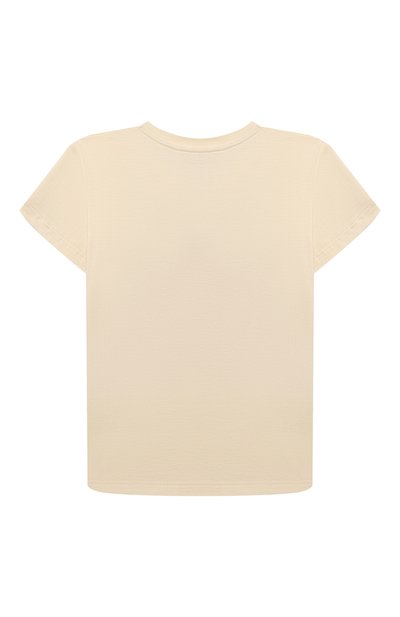 Прямую футболку из хлопкового джерси украсили спереди брендированным принтом. Круглую ребристую горловину модели дополнили контрастной нашивкой с логотипом марки.