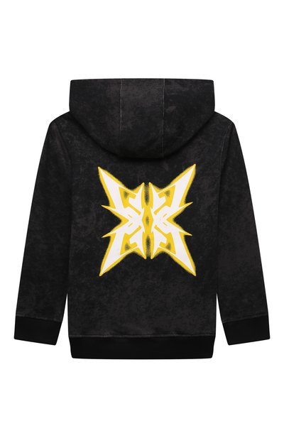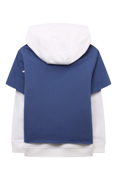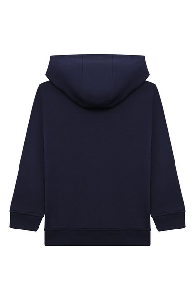 Для изготовления oversize-худи использовали хлопковый трикотаж и полиэстер. Спереди модель украсили контрастным брендированным принтом.
