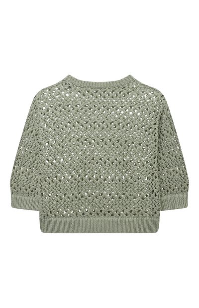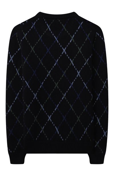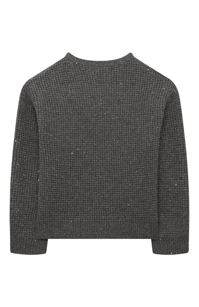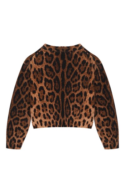 Пуловер с фирменным леопардовым мотивом украсили металлической монограммой DG спереди. Модель с круглой горловиной, манжетами и поясом в рубчик связали из шерсти первого пострига.