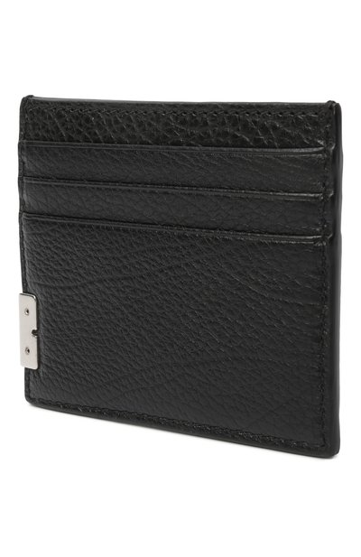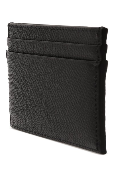 Футляр с четырьмя карточными слотами и отделением для чеков изготовили из зернистой телячьей кожи. Спереди картхолдер украсили металлической эмблемой VLogo Signature.