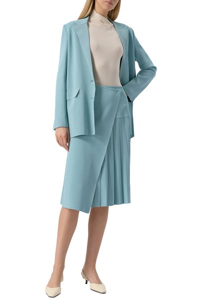 Длинную юбку Agiate с широкими мягкими складками и потайной молнией сбоку выполнили из хлопкового поплина. Модель с завязками на поясе со шлевками дополнили карманами в боковых швах.