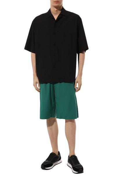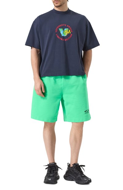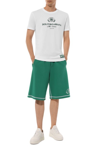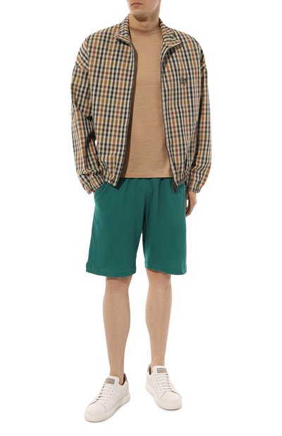 Шорты с эластичным поясом-кулиской выполнили из хлопковой ткани с жаккардовым узором Monogram. Спереди модель с прорезными боковыми и накладным задним карманами декорировали эмблемой марки.