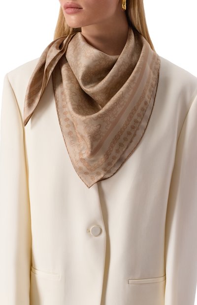 Шаль с жаккардовым мотивом 4G украсили короткой бахромой по краям. Аксессуар выполнили из шелкового твила с добавлением шерсти.