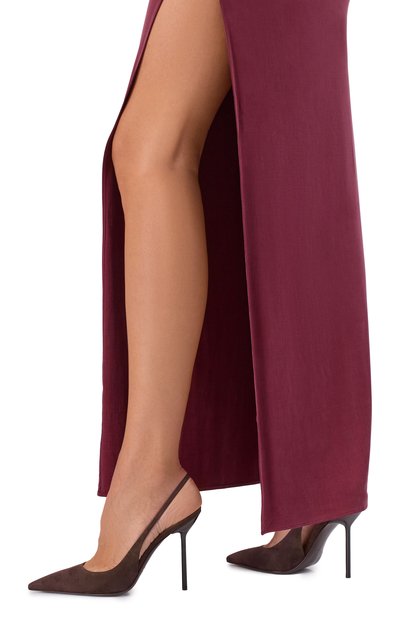 Для изготовления слингбэков Lidia на высокой тонкой шпильке использовали мягкую замшу. Туфли с зауженным мысом дополнили эластичной вставкой на ремешке.