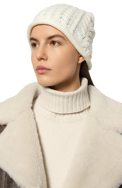 Капор с длинной манжетой связали рифленым узором из микса шерсти и кашемира. Модель с регулируемой кулиской по краю выреза украсили брендированным резиновым патчем спереди.