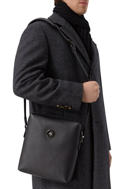 Сумку из кожи с рельефным узором украсили фирменной металлической эмблемой Royal Eagle. Аксессуар на молнии дополнили регулируемым плечевым ремнем.