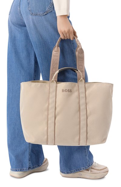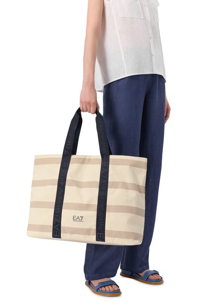 Шопер с внутренним карманом создан совместно с Hotel du Cap-Eden-Roc из плотного текстиля. Сумка с отделкой и ручками контрастного цвета украшена спереди эмблемой бренда.