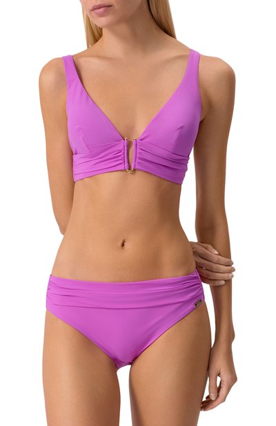 Бра Porto с треугольными чашками сшили из быстросохнущего полиамидного джерси. Модель с контрастной окантовкой дополнили нерегулируемыми бретелями и узкими лентами, завязывающимися сзади.