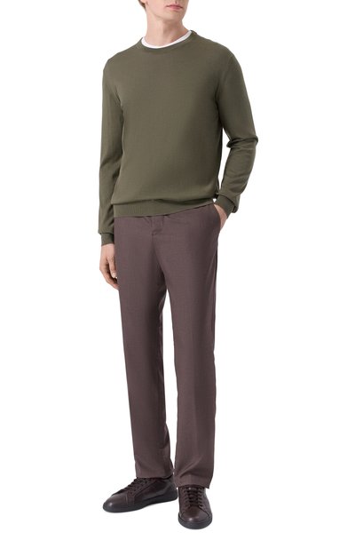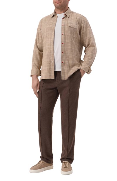 Брюки с вышитой контрастной эмблемой Solomeo изготовили из хлопкового вельвета. Модель со вставками в тон и короткими молниями на брючинах дополнили ремешками велкро на поясе, боковыми и задними прорезными карманами, а также карго с клапанами.