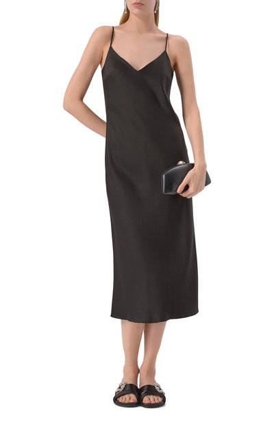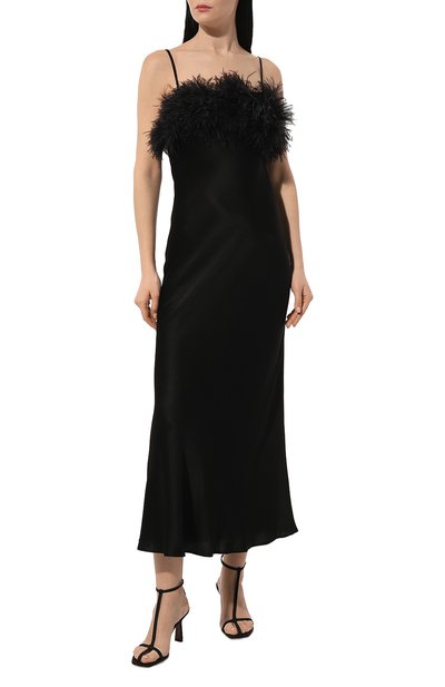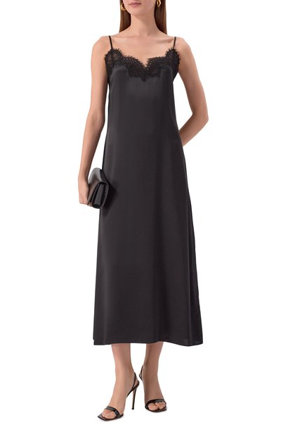 Миди-платье Delacey с узкими двойными бретелями, и V-образным вырезом сшили из вискозного атласа. Приталенная модель с полупрозрачными кружевными вставками застегивается потайной молнией сзади.