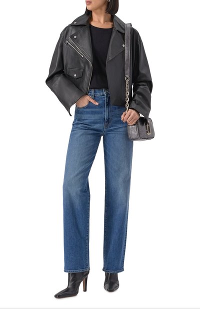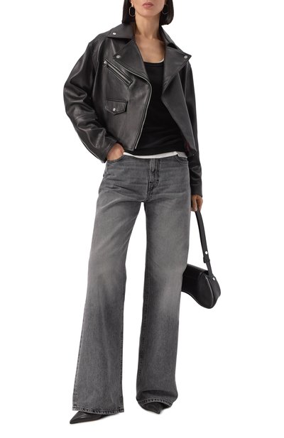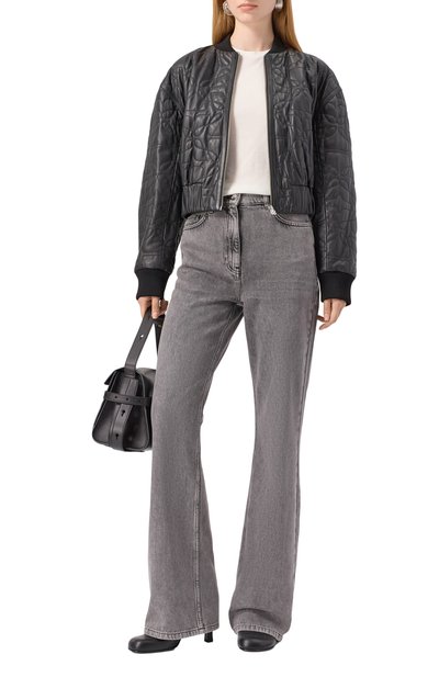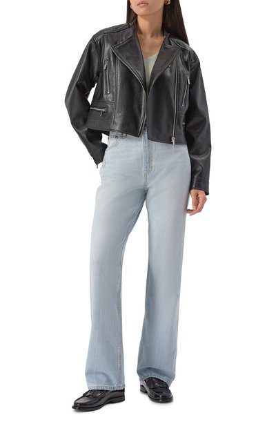 Немного укороченную косуху Lujana выполнили из гладкой матовой кожи. Куртку с брендированными заклепками на лацканах и погонами дополнили молниями на боковых карманах и рукавах.