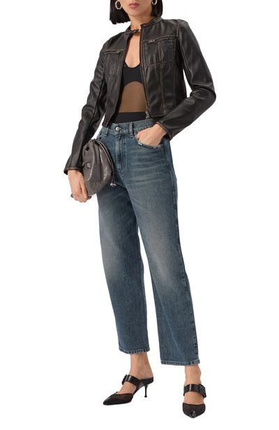 Выбеленные джинсы Leni с декоративными потертостями выполнили из регенеративного хлопка. Свободные брюки с пятью карманами украсили брендированным жакроном и фирменной вышивкой сзади.