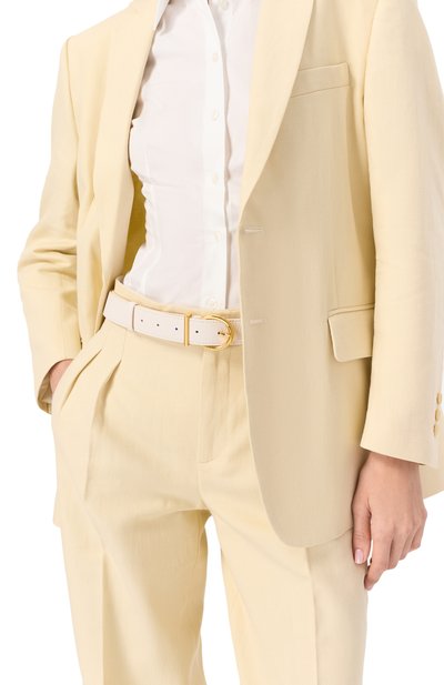 Ремень Colette средней ширины выполнили из телячьей кожи. Аксессуар застегивается фигурной пряжкой с выгравированным логотипом.