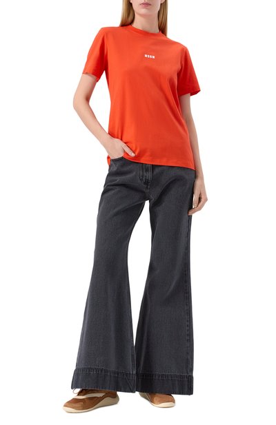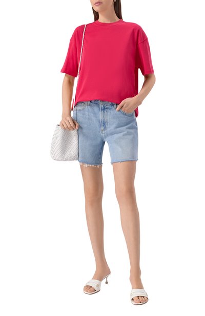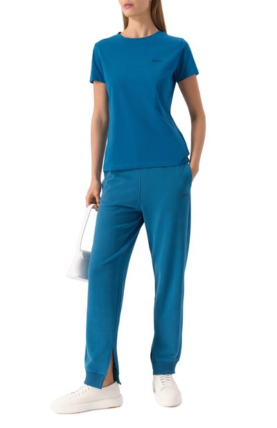 Для пошива футболки Destrel с круглым вырезом использовали джерси на основе хлопка, выращенного с применением методов регенеративного земледелия. Спереди приталенную модель украсили логотипом марки.