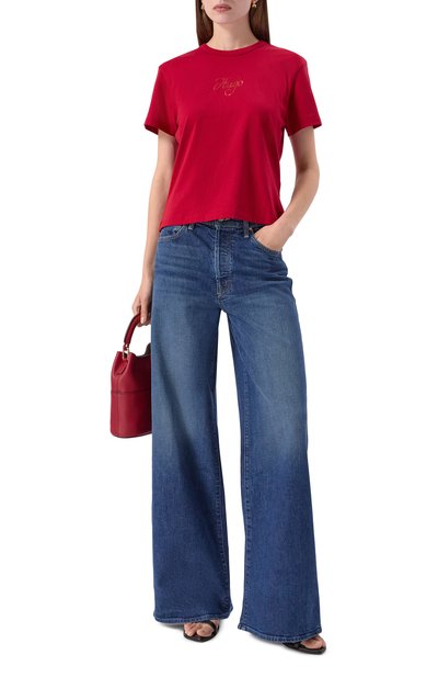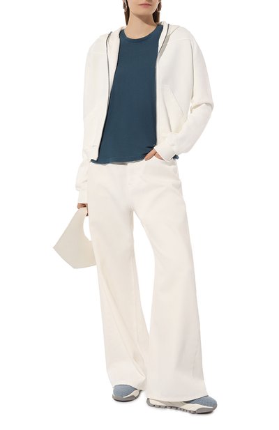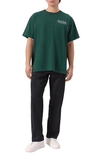 Для пошива футболки Destrel с круглым вырезом использовали джерси на основе хлопка, выращенного с применением методов регенеративного земледелия. Спереди приталенную модель украсили логотипом марки.