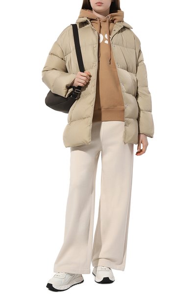 Свободное худи Efelpa со спущенной линией плеч, широкими манжетами и поясом сшили из эластичного микса модала и полиэстера. Капюшон дополнили шнуром с брендированными металлическими эглетами.