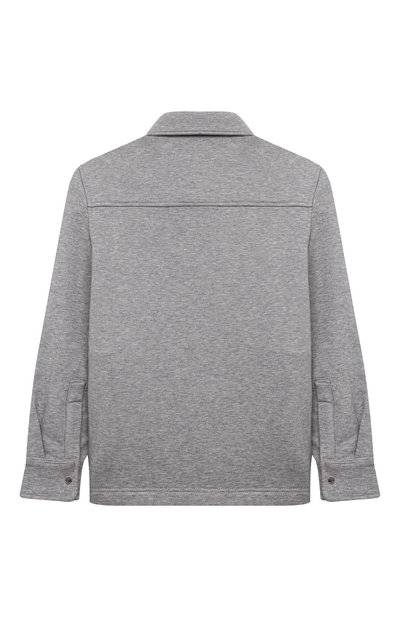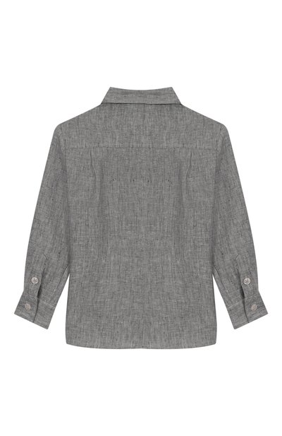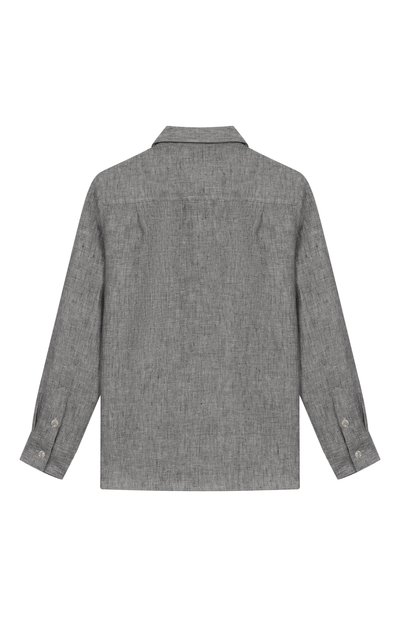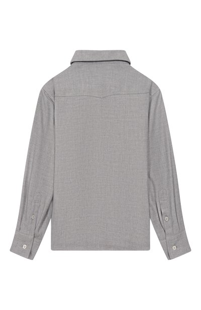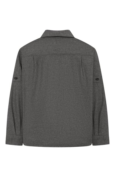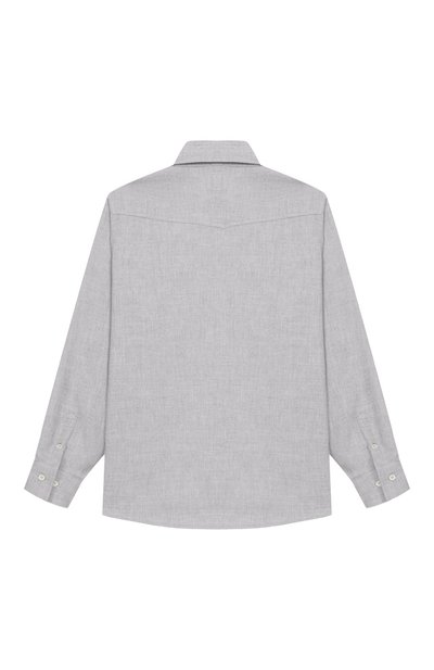 Рубашку с шевронным узором выполнили из хлопковой фланели с добавлением лиоцелла. Модель с треугольными накладками на плечах, как и клапаны двух нагрудных карманов, застегивается перламутровыми кнопками, а прямоугольные манжеты — пуговицами.