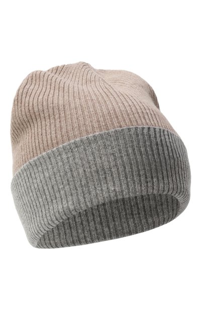 Шапку бини связали резинкой из кашемировой пряжи двух оттенков. Двухслойный аксессуар дополнили широким отворотом.