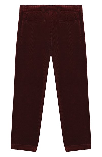Для пошива брюк с защипами и отворотами использовали хлопковый вельвет. Изделие со шлевками на поясе дополнили парой боковых карманов и двумя задними.