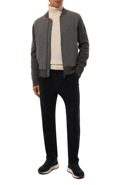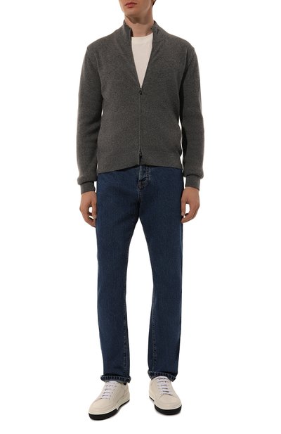 Кардиган связали фактурным узором из микса шерсти, вискозы и кашемира. Модель с эластичными поясом, манжетами и высоким воротом застегивается встречной молнией.
