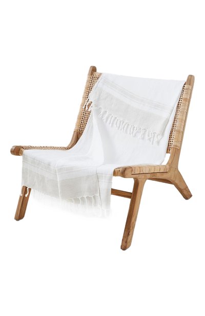Для изготовления двухцветного пледа использовали чистый кашемир. Края прямоугольной модели подчеркнули широким кантом.