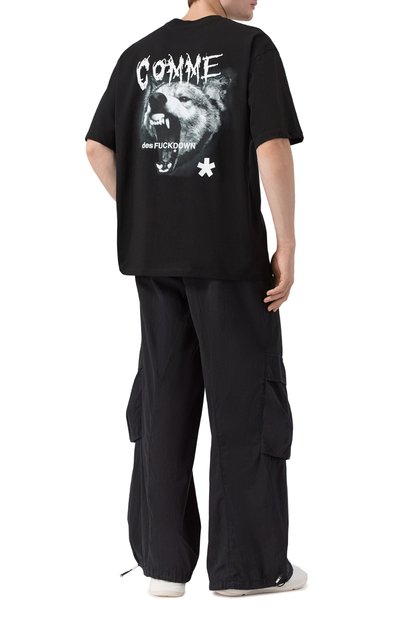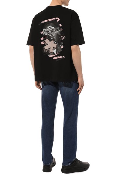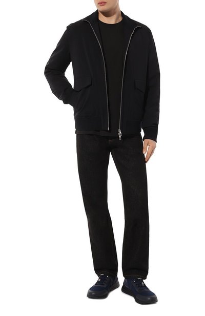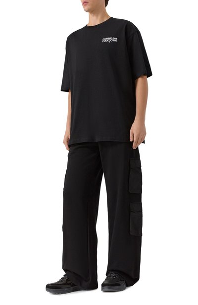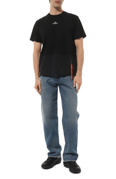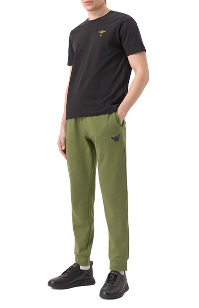 Для пошива футболки с круглым вырезом в рубчик использовали хлопковый трикотаж. Спереди модель прямого кроя украсили вышитой эмблемой, вдохновленной символикой итальянских ВВС.