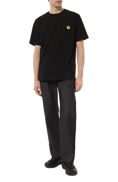 Для пошива футболки с круглым вырез ом в рубчик использовали хлопковый трикотаж. Спереди модель прямого кроя украсили вышитой эмблемой, вдохновленной символикой итальянских ВВС.