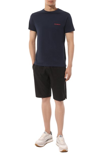 Футболку оттенка Gold Flake Yellow выполнили из хлопкового джерси. Модель с круглой горловиной украсили вышитой эмблемой, отсылающей к символике итальянских ВВС.