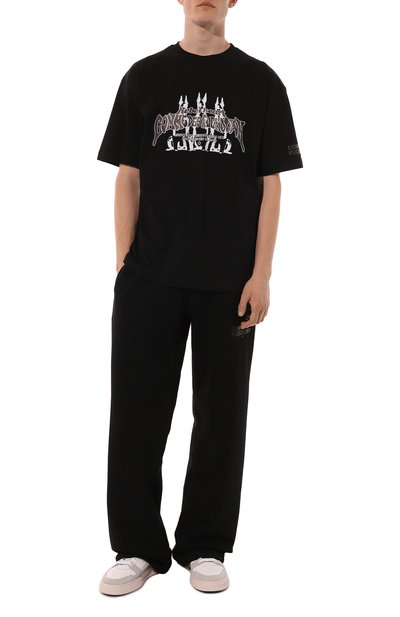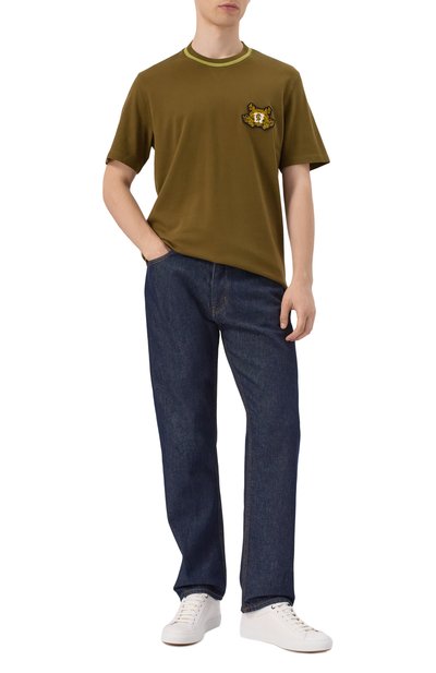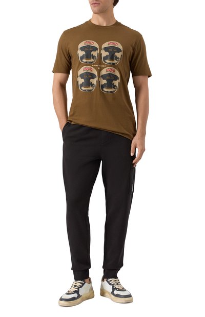 Футболку выполнили из хлопкового джерси. Модель украсили брендированным принтом с изображением истребителя F-35A из авиапарка 32-го крыла ВВС Италии, а левый рукав – вышитым логотипом.