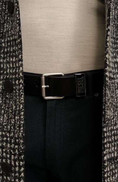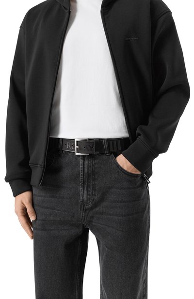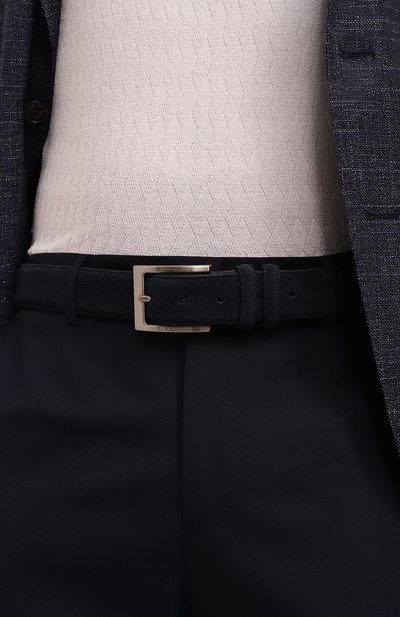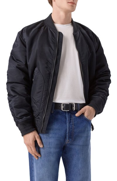 Ремень с декоративными потертостями выполнили из плотной хлопковой ткани с добавлением акрила. Модель с роликовой пряжкой из патинированного металла дополнили двумя кожаными тренчиками с тисненым логотипом и брендированной заклепкой. Наконечник декорировали вставкой с эмблемой ВВС Италии.