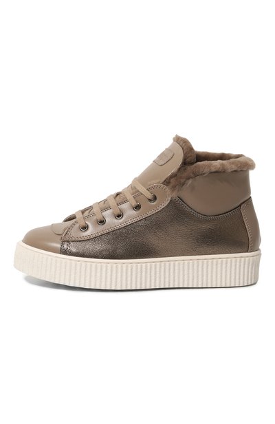 Кеды с подкладом из овчины сшиты вручную из фактурной замши с учетом анатомических особенностей растущей де тской стопы. Модель без декора дополнена гибкой резиновой подошвой.