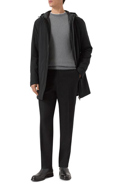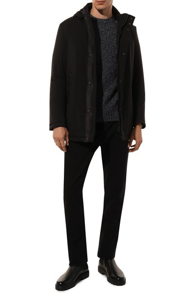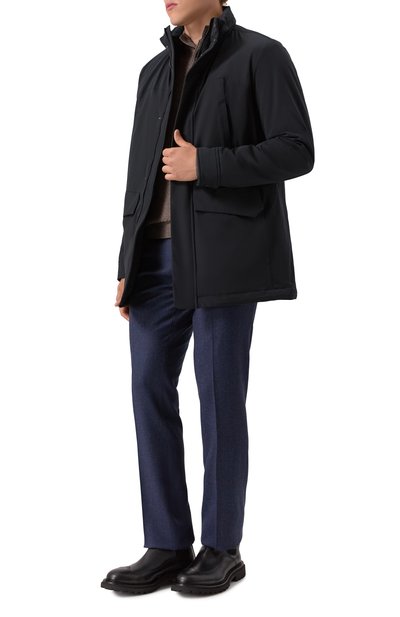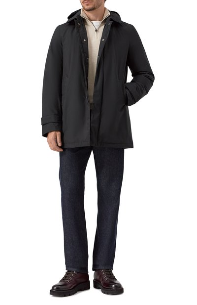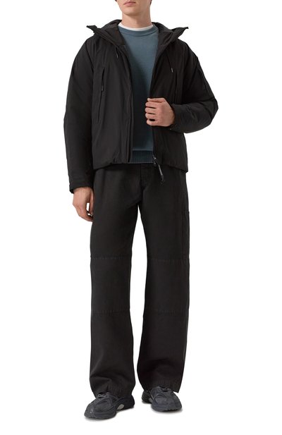 Утепленную куртку с высоким воротником, переходящим в капюшон, и двумя карманами сшили из матового гладкого полиэстера. Модель с эластичными манжетами и поясом застегивается молнией, прикрытой штормовым клапаном на кнопках.