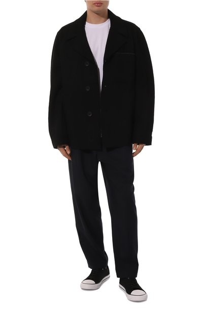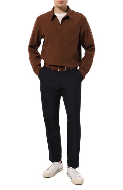 Брюки Philip со стрелками и широкими отворотами выполнили из шерстяной ткани с едва заметным шевронным узором. Модель дополнили боковыми карманами и задними с клапанами на пуговицах.