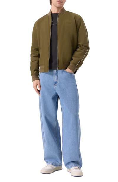 Широкие джинсы с брендированным патчем на поясе выполнили из неэластичного денима. Модель с пятью стандартными карманами дополнили еще двумя сбоку.