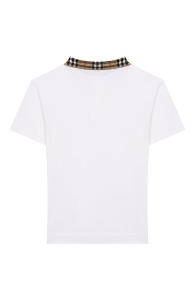 Для изготовления поло использовали хлопковое пике. Модель с вышитой эмблемой Equestrian Knight спереди дополнили отделкой из ткани в клетку Burberry Check на пуговичной планке.