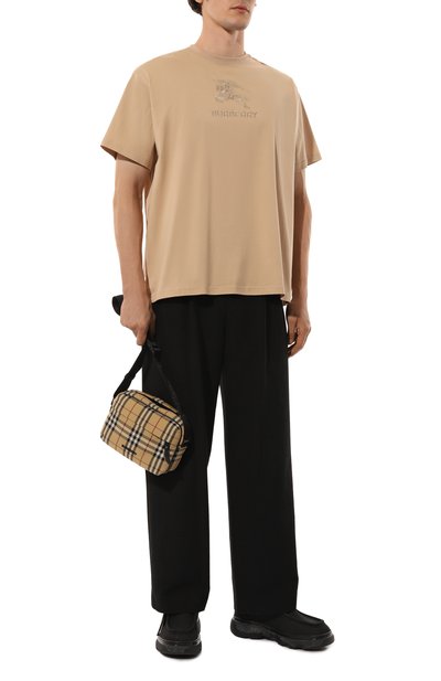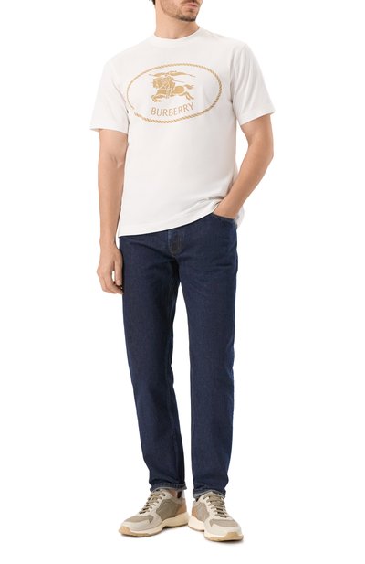 Футболку с круглой горловиной выполнили из хлопкового джерси. Модель украсили архивной эмблемой Equestrian Knight в овальном обрамлении, впервые появившейся на сумках марки в 1980-х.
