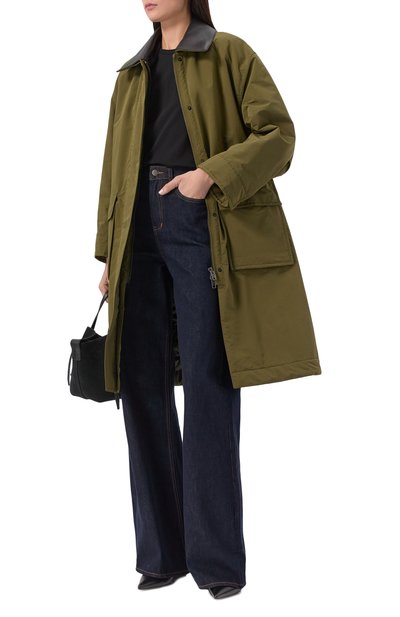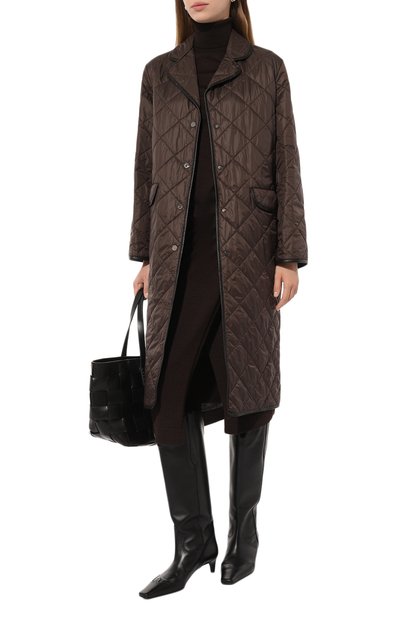 Для пошива стеганой куртки на встречной молнии и кнопках использовали нейлон, а подклад выполнили из хлопкового твила с принтом Burberry Check. Отложной воротник, манжеты и накладные карманы отделаны вельветом.