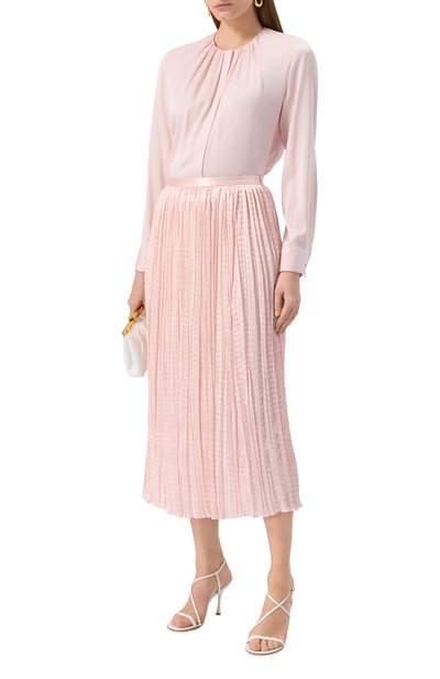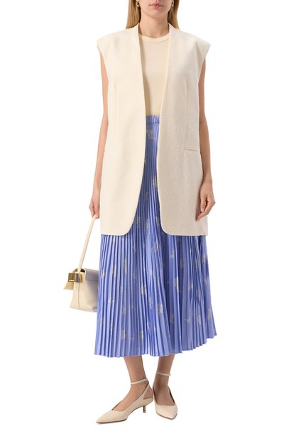 Плиссированная юбка Cral одинаково хорошо сочетается и с темной, и со светлой одеждой. Модель с плоским поясом из микрофибры выполнили из крепового хлопкового джерси с добавлением полиэстера.