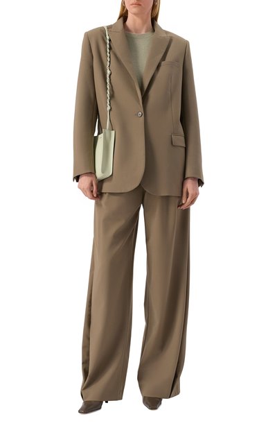 Однобортный жакет Floc силуэта oversize выполнили из ткани на основе хлопка. Модель с высокой шлицей дополнили нагрудным карманом и боковыми с клапанами.