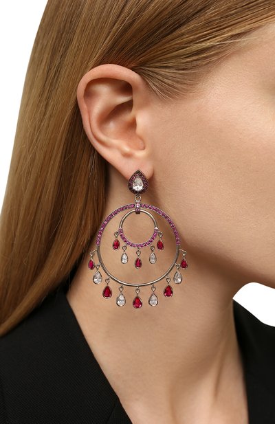 Скульптурные серьги выполнили из серебра 925-й пробы. Витое украшение с застежкой-пусетой окрасили эмалью двух оттенков.
