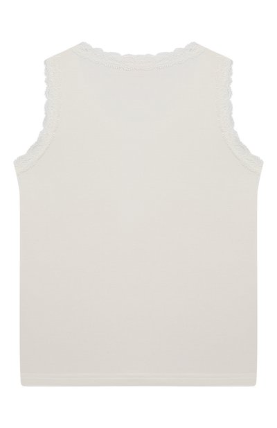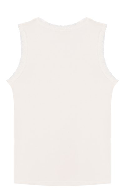 Для пошива майки с цветочным мотивом использовали модал с добавлением эластана. Горловину и проймы изделия подчеркнули окантовкой из кружева.