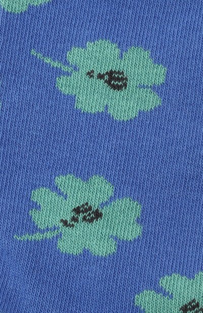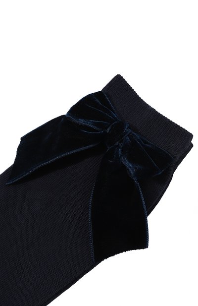 Гольфы с усиленными стрессовыми зонами выполнили из стрейчевой хлопковой пряжи с добавлением нейлона. Риф леную манжету украсили контрастными оборкой и бутоном из цветочного кружева.