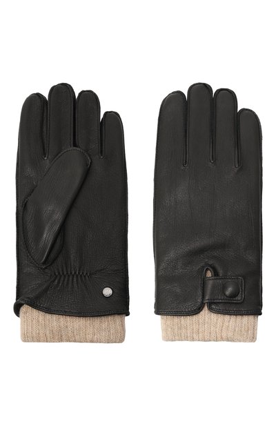 Перчатки с небольшим разрезом на манжете сбоку выполнили из шерстяной ткани и тонко выделанной кожи. Принадлежность марке обозначили брендированной пластиной.